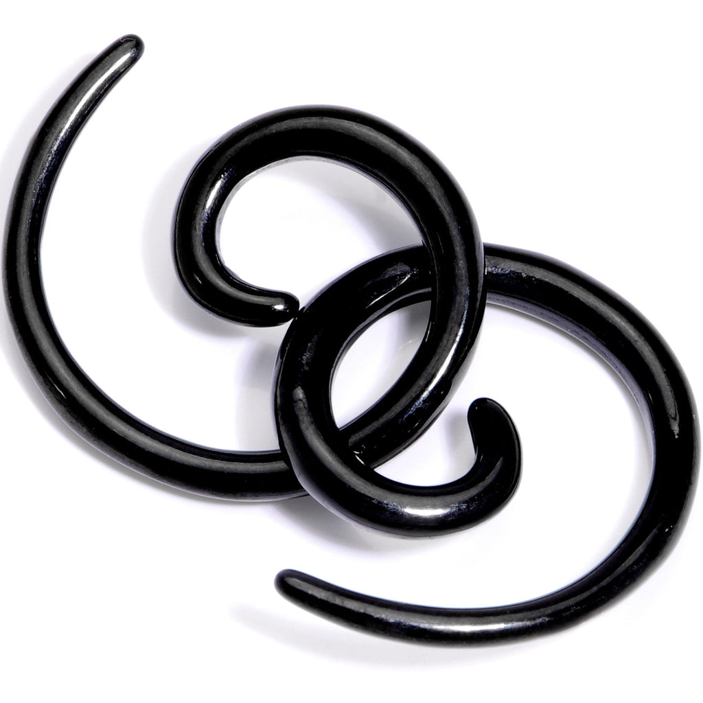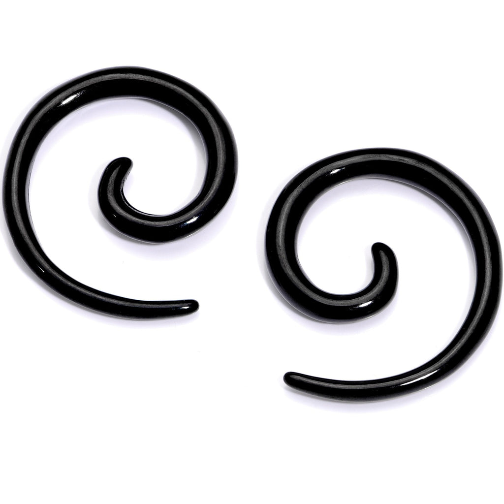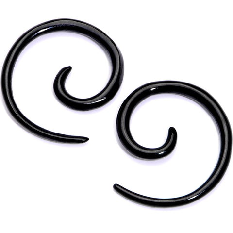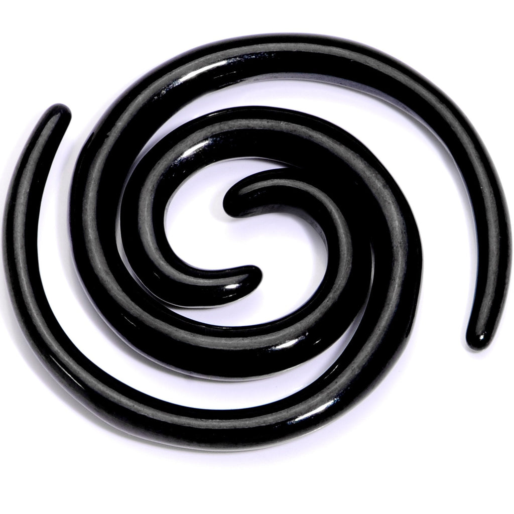 Insert a little bit of style into those stretched earlobes with this pair of spiral tapers. These tapered ear gauges are made with black anodized titanium over 316L surgical grade stainless steel and feature a spiral design used to gently stretch from one gauge size to the next. Sold as a set of two. NOTE: Prices of plugs may vary based on plug ear gauge size selected from drop down. Specifications