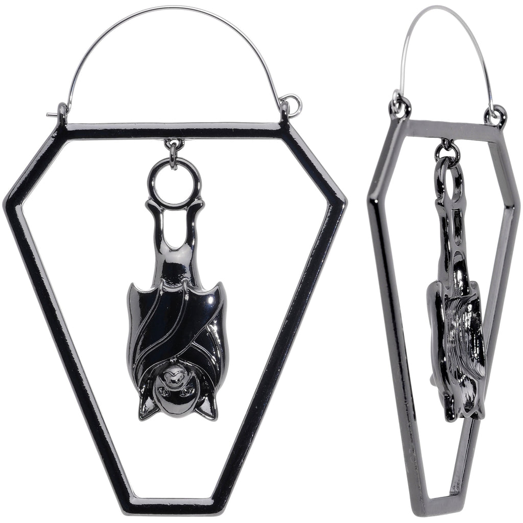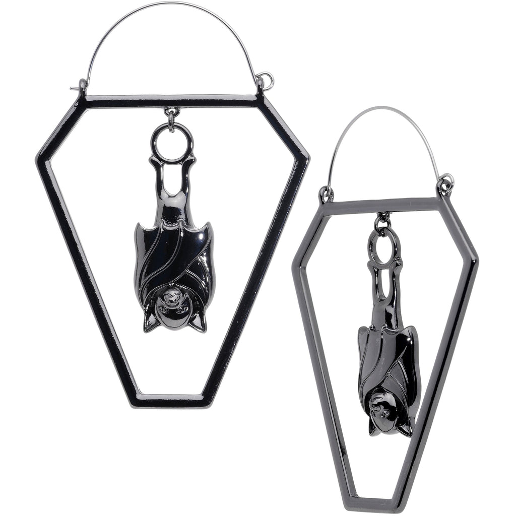 Black Bat Coffin Halloween Tunnel Plug Earrings