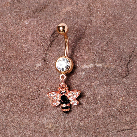 Black Clear Gem Rose Gold Tone Bee Dangle Belly Ring