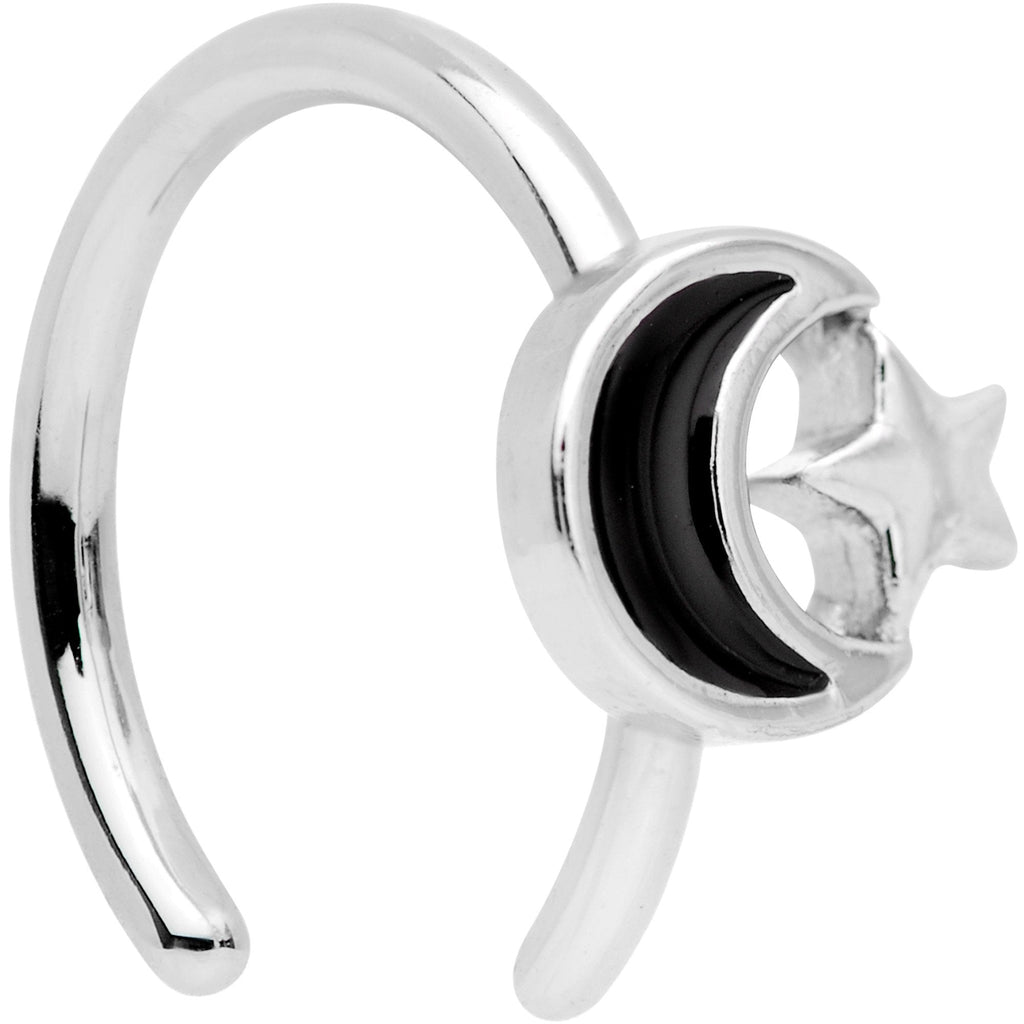 If you just haven't gotten that cartilage piercing yet, then this non-pierced 18 gauge ear cuff is right up your alley. Made with a 8mm durable 316L surgical grade stainless steel circular ring, this ear cuff is set with a little black moon and star charm. This non-pierced ear cuff makes a great addition to any stylish ensemble.Specifications