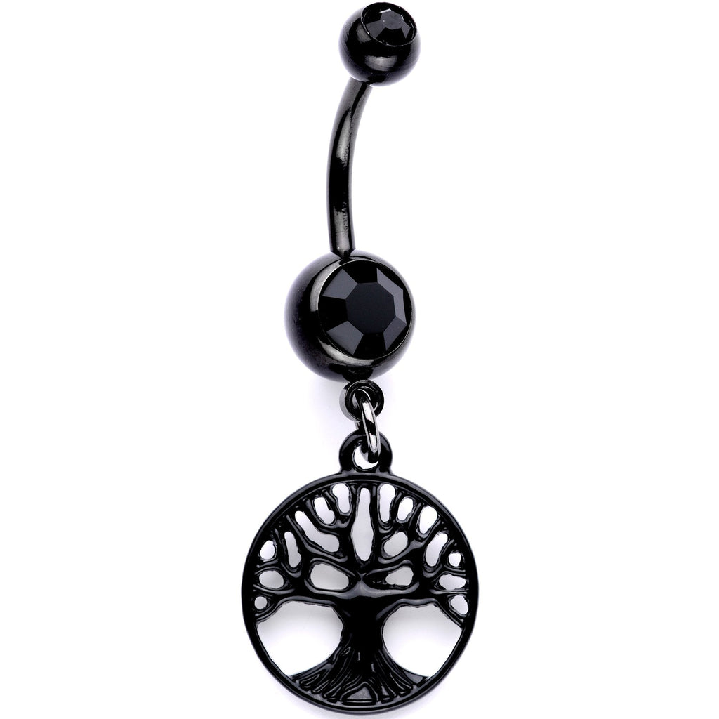 Black Gem Black Anodized Tree of Life Charm Dangle Belly Ring