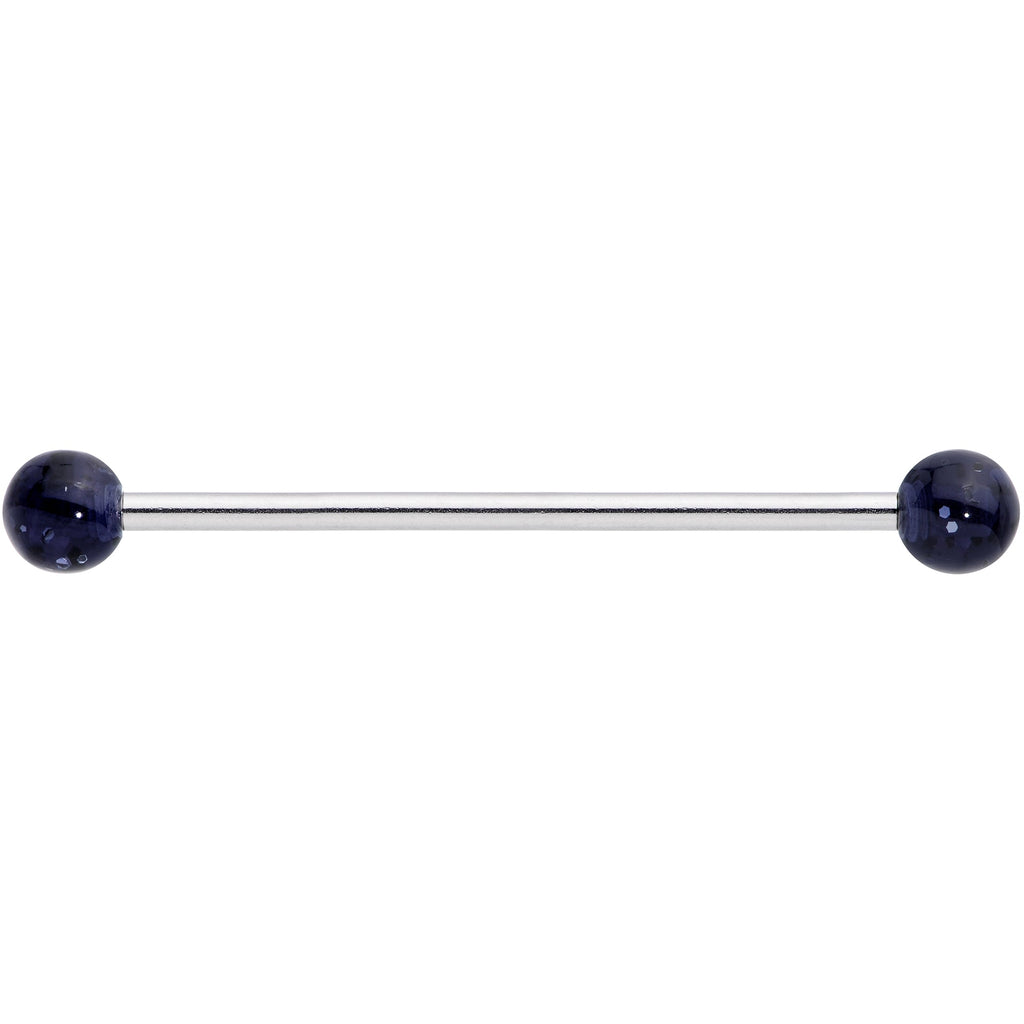 Acrylic glitter industrial barbell. 14 Gauge surgical steel straight industrial barbell with acrylic gitter ball ends. Project bars work for multiple piercings. Simply insert each end of the barbell into each hole to wear piercing.