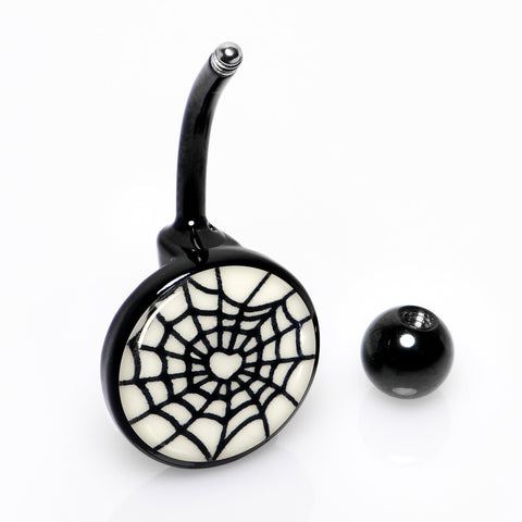 Black Glow in the Dark Heart Spider Web Belly Ring by Onyx O
