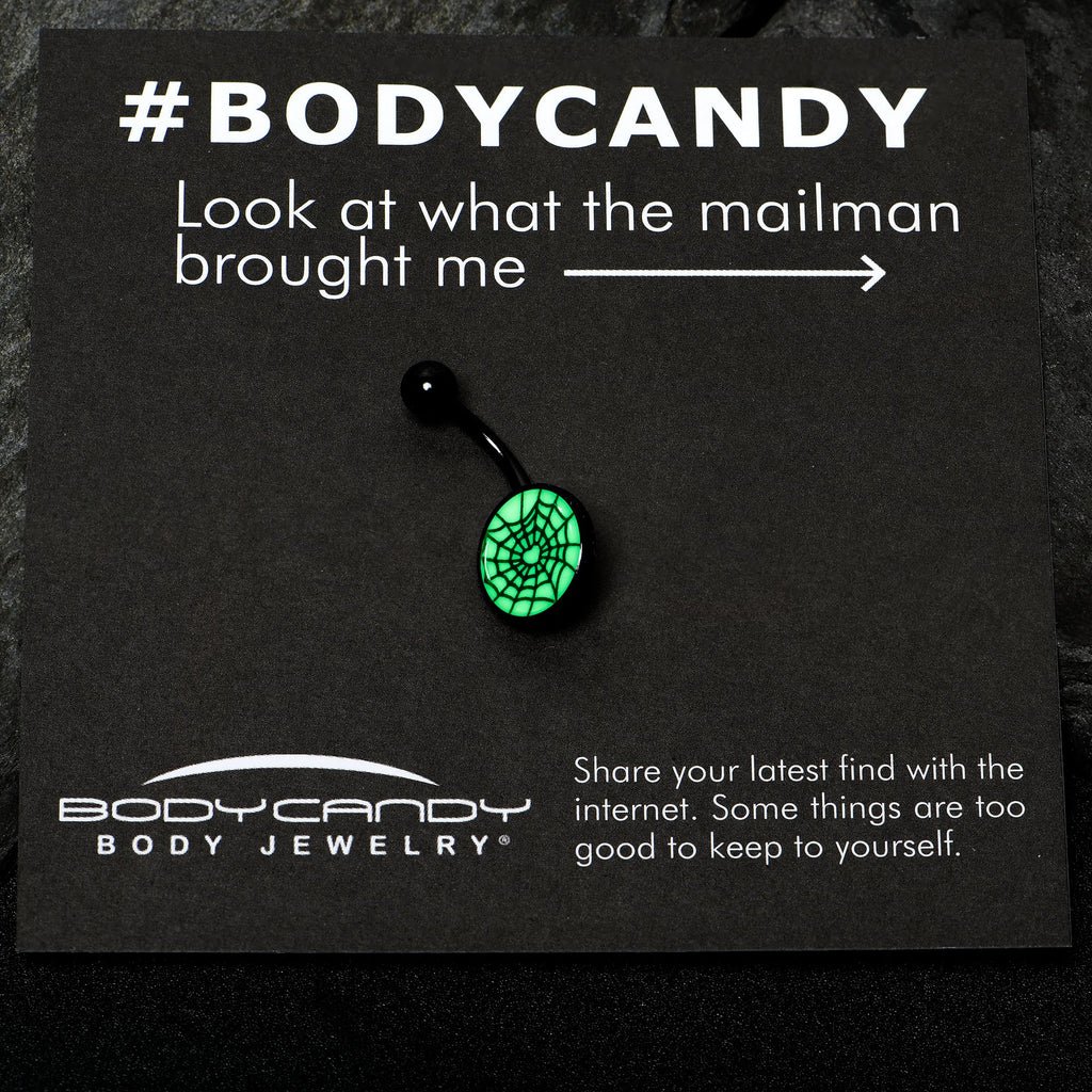 Black Glow in the Dark Heart Spider Web Belly Ring
