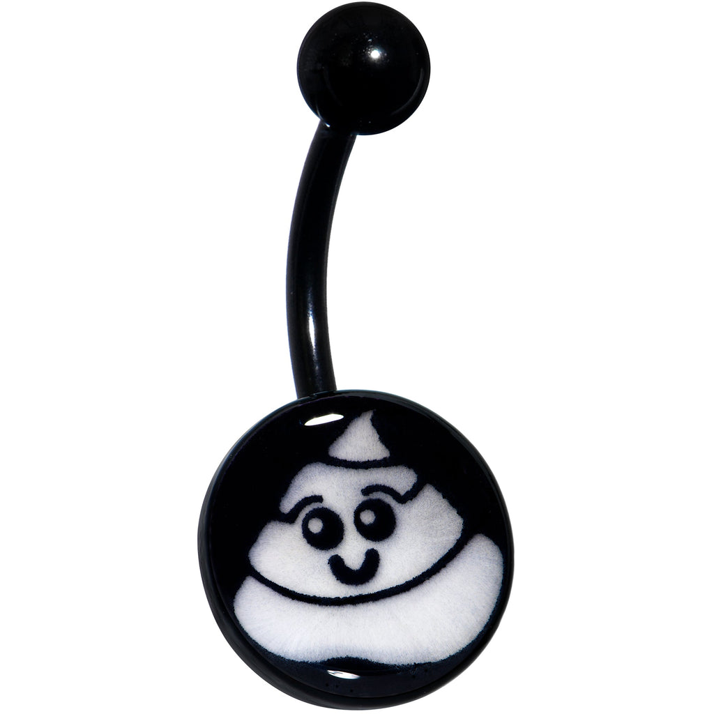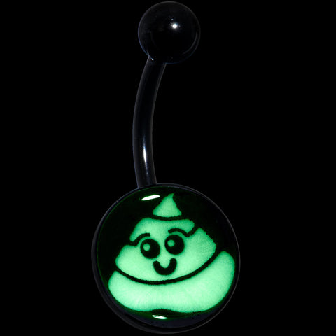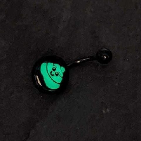 Lighten up the mood with this fun Pile of Poo belly button ring with its cartoon like eyes and big friendly smile. This non dangle navel piercing features an anodized curved barbell and fun glow in the dark logo inlay.