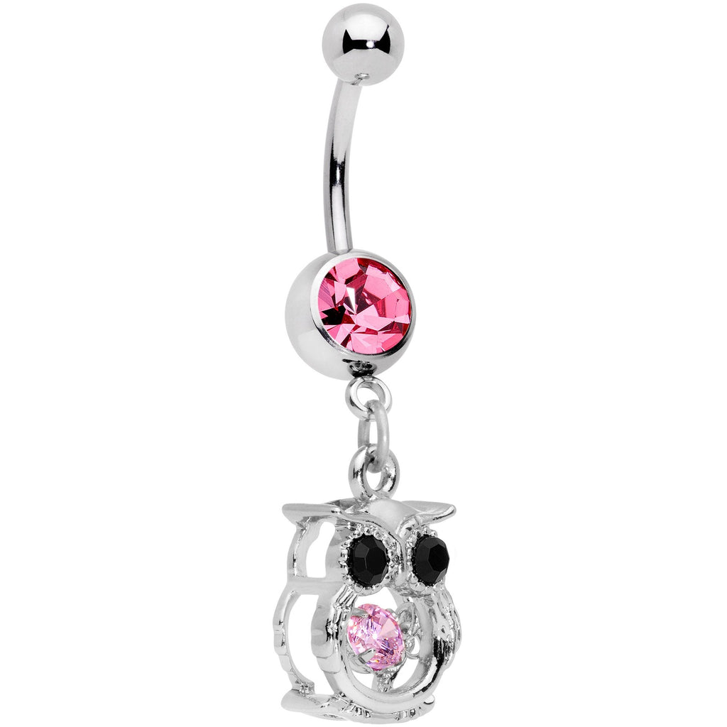 Black Pink CZ Gem It's A Hoot Owl Dangle Belly Ring