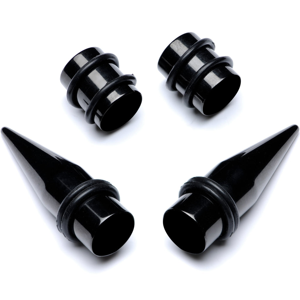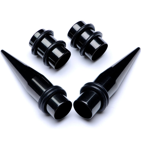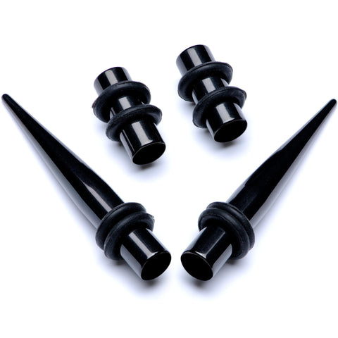 If you're ready to stretch your lobes to the next gauge, this ear expander kit will supply you with what you need to do it safely. The tapers and straight plugs are made with black PVD over 316L surgical grade stainless steel. You get a pair of straight tapered plugs, each with rubber o-rings for secure wear. When the taper has been fully inserted and you're ready to put in a plug, you also get a pair of straight ear plugs. Each straight plug comes with rubber o-rings too. Ready? Set? Stretch!! Sold as a set of four.