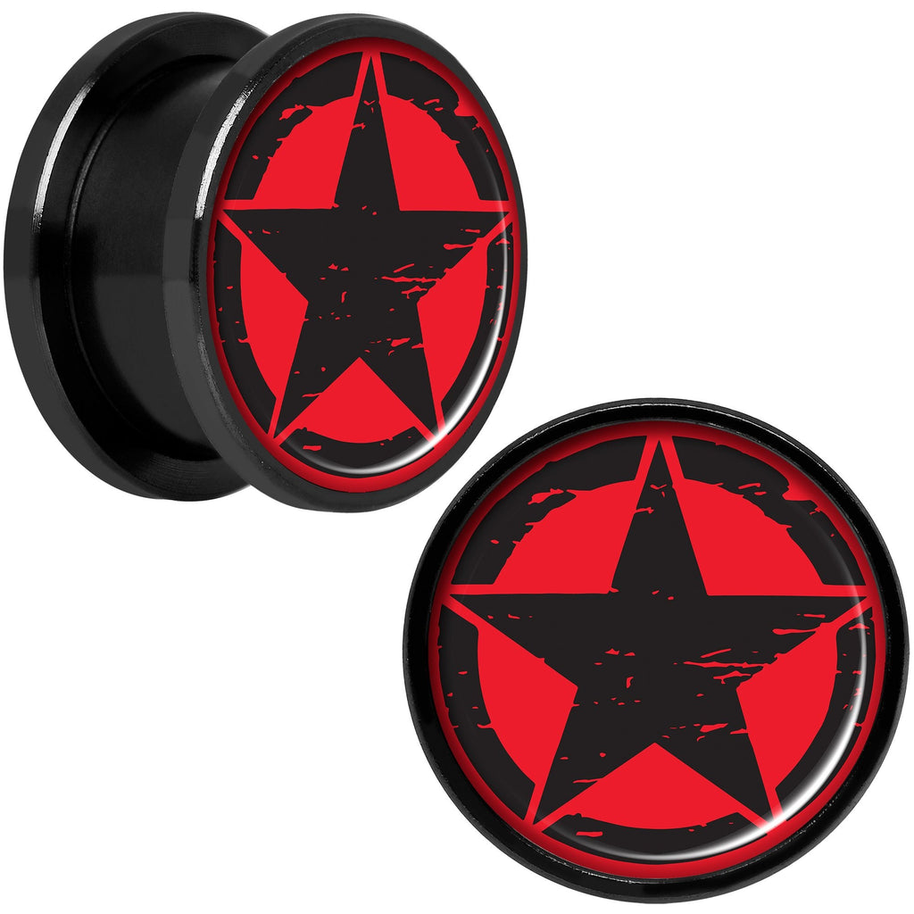 Black Red Distressed Star Black Anodized Screw Fit Plug Set 5/8"