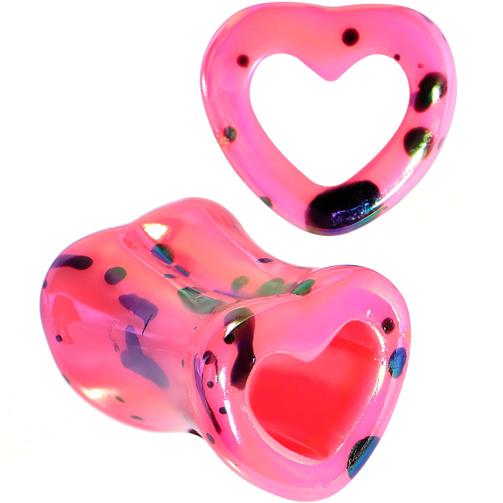 Black Speckled Pink Acrylic Heart Saddle Plug Set 4mm to 20mm