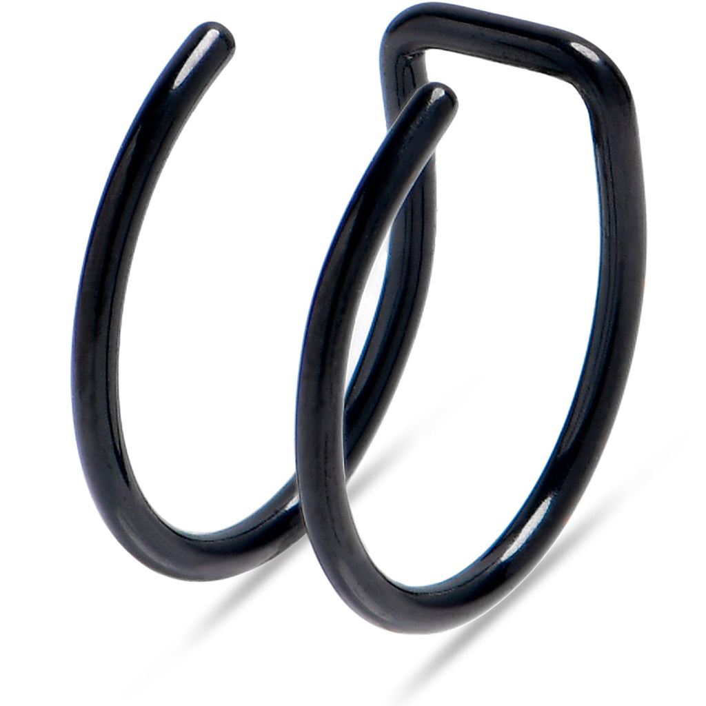 This fake cartilage hoop earring does not require a piercing. Get the illusion of a stacked earring look with our double banded ear cuff. Non piercing hoop cartilage earring. Adjustable ear cuff is lightweight and will provide a comfortable fit. Stainless steel ear cuff fake cartilage earring. You can also use this as a fake double hoop nose ring. Clip on double hoop cartilage cuff.Specifications
