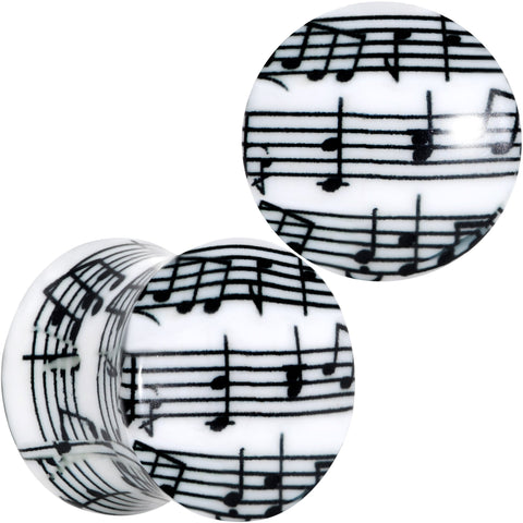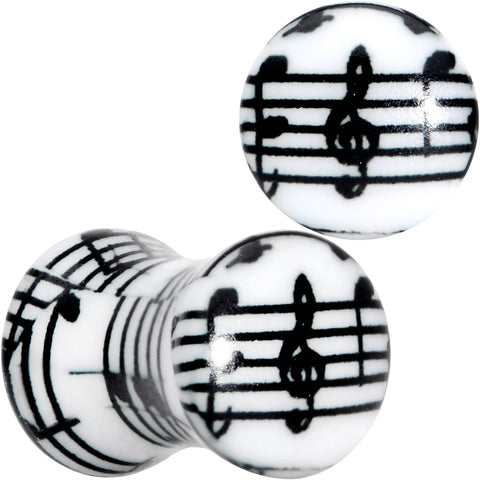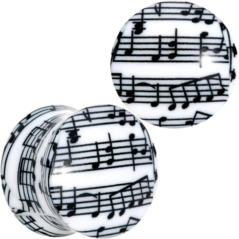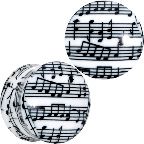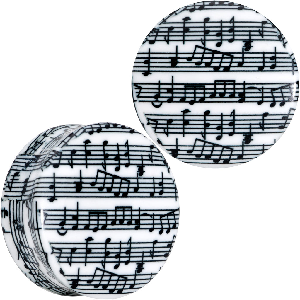 You'll be rocking out to the music and feeling the beat with these plugs in your stretched lobes! They're made with acrylic and feature a double flare design for secure wear. They feature a complex music note print, similar to the appearance of sheet music. Whether you play an instrument or are just a music lover, these plugs are sure to add a whole new rhythm to your look! Sold as a set of two.Specifications