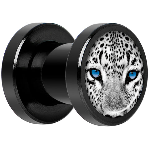 Black White Leopard Eyes Black Anodized Screw Fit Plug Set 2 Gauge