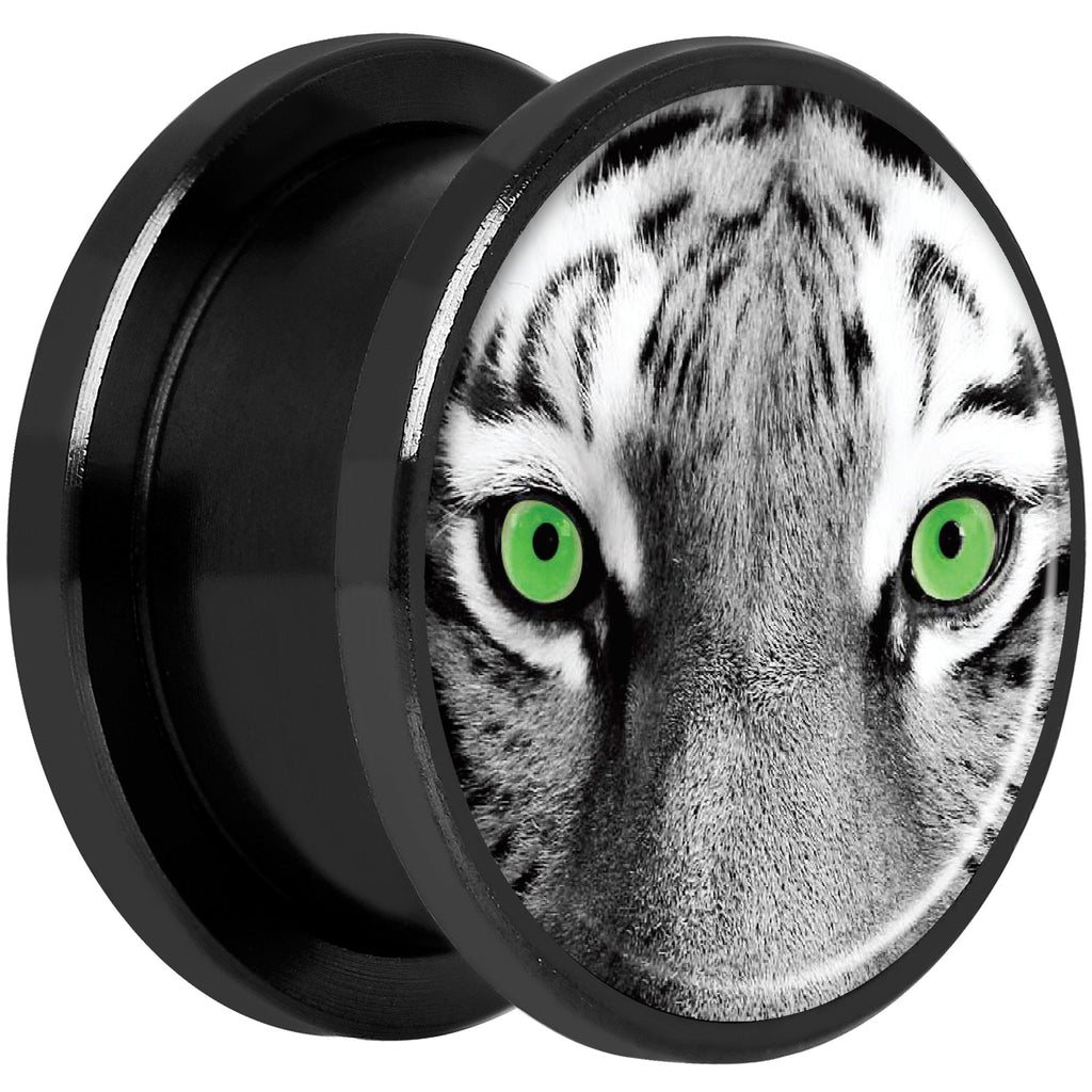 Black White Tiger Eyes Black Anodized Screw Fit Plug Set 5/8"