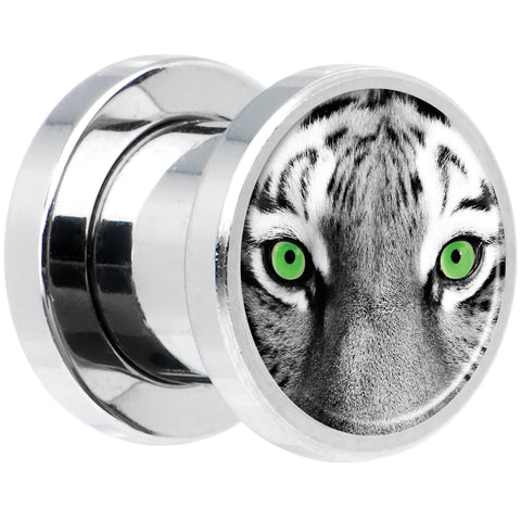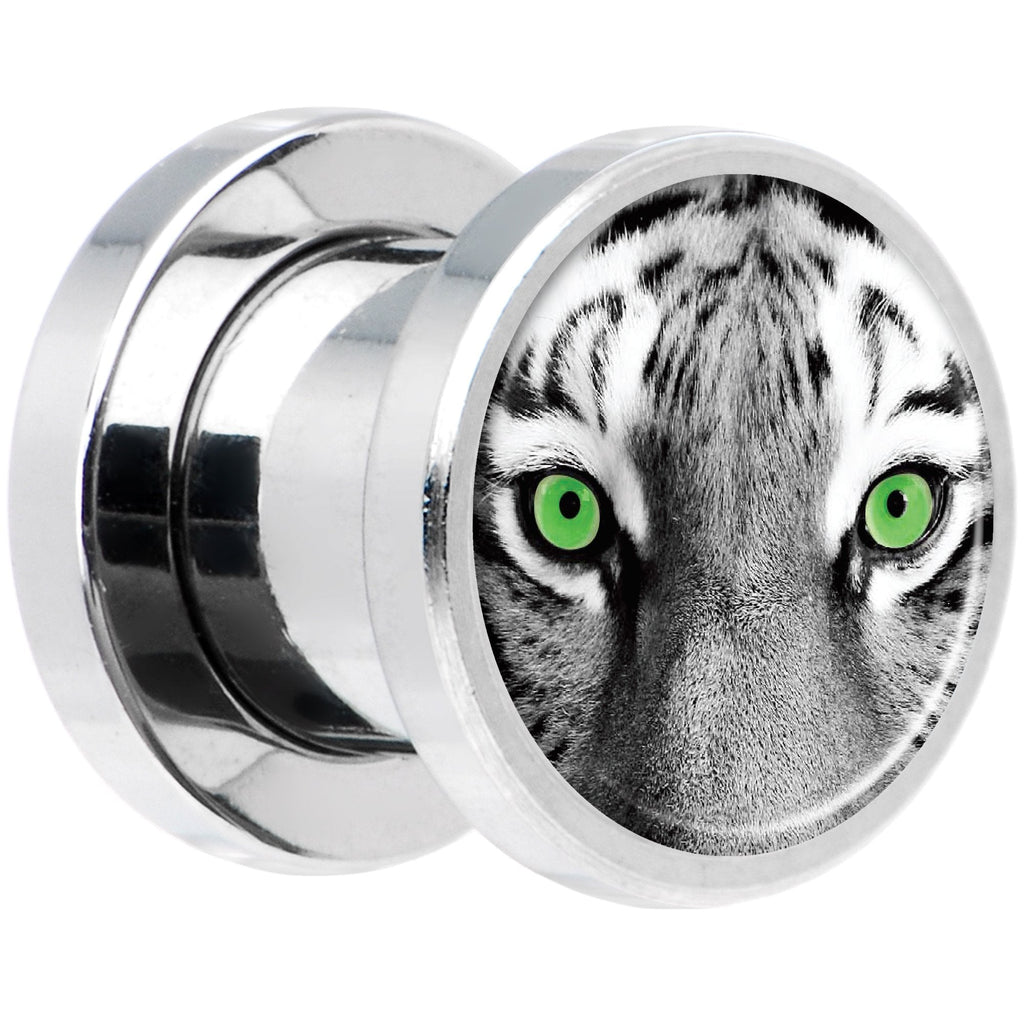Black White Tiger Eyes Steel Screw Fit Plug Set 0 Gauge