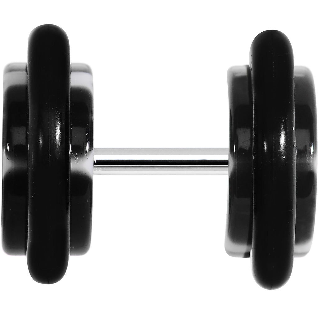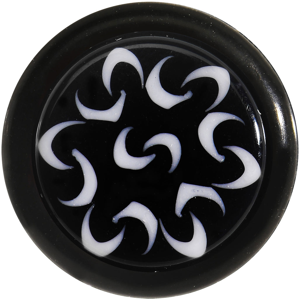 Get the look of a larger ear gauge with this pair of cheater plugs with trippy style. Made with durable 316L surgical grade stainless steel posts, these faux plugs require a minimum 16 gauge piercing in your earlobe to wear and come complete with rubber o-rings to make them look that much more real. The plug portions are made with black acrylic and feature white tribal logo designs. Sold as a set of two.