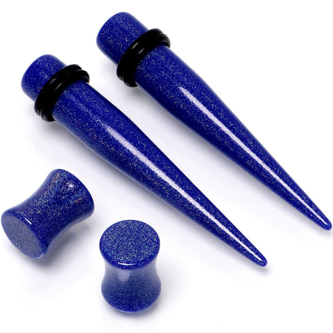If your ears are eager for an expansion, these straight tapered plugs may be able to satisfy your desires. These ear gauges are made with lightweight blue acrylic and feature a striking shimmer finish. They come with rubber o-rings for secure wear. You will also receive a matching set of blue shimmer acrylic plugs, with a saddle design for comfortable insertion and removal. Stretch your lobes in style with these matching tapers and plugs. Sold as a set of fourSpecifications
