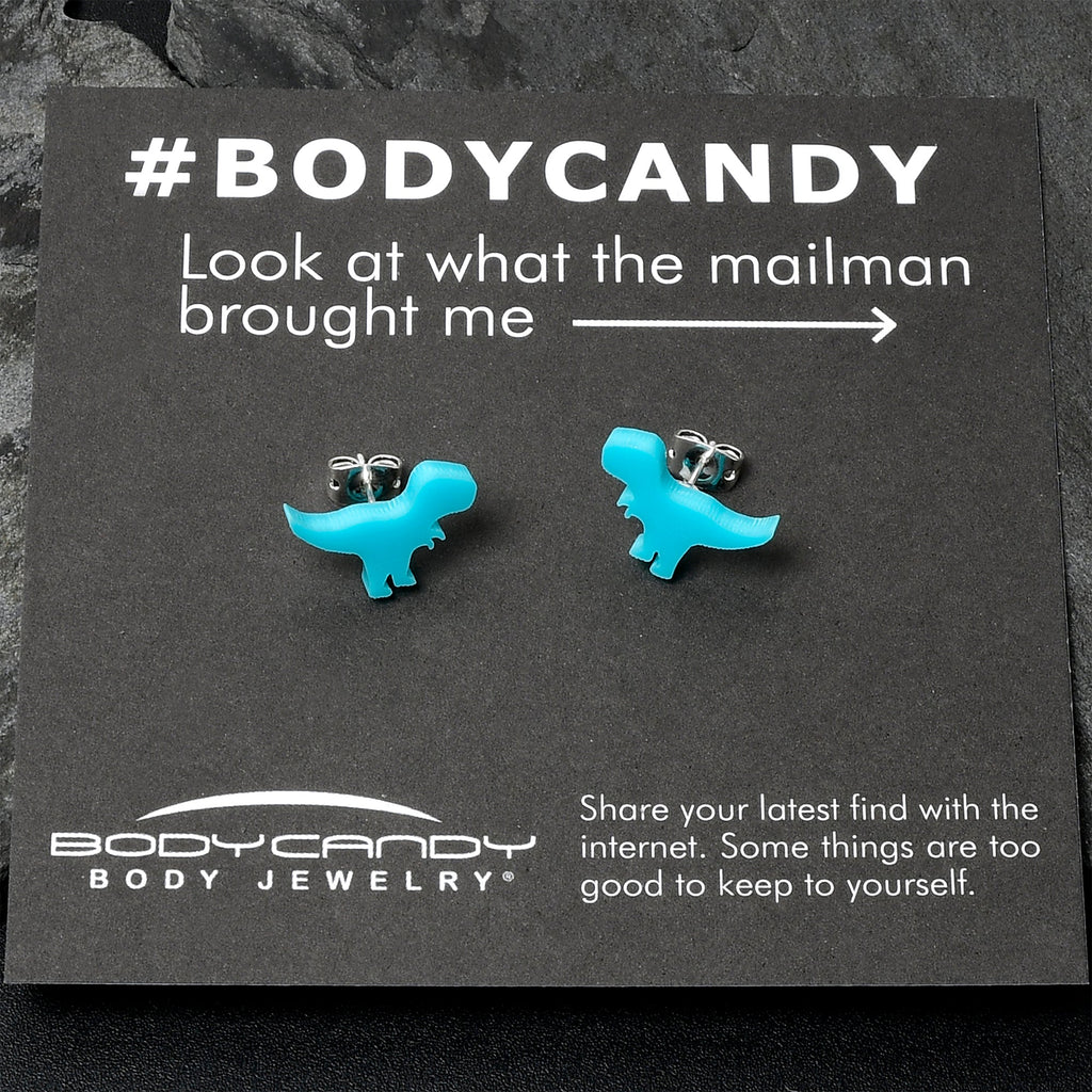 Hypoallergenic jewelry for sensitive skin. Hypoallergenic jewelry for sensitive skin.Blue Acrylic Tyrannosaurus Rex Dinosaur Stud Earrings