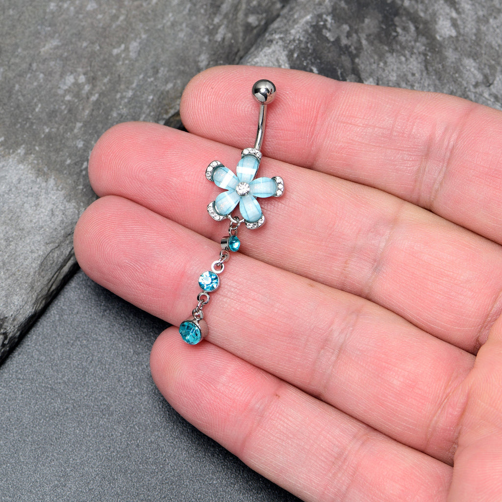 Blue Clear Gem Retro Flower Glamour Dangle Belly Ring