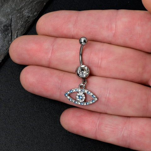 Blue Clear Gem Wide Eye Dangle Belly Ring