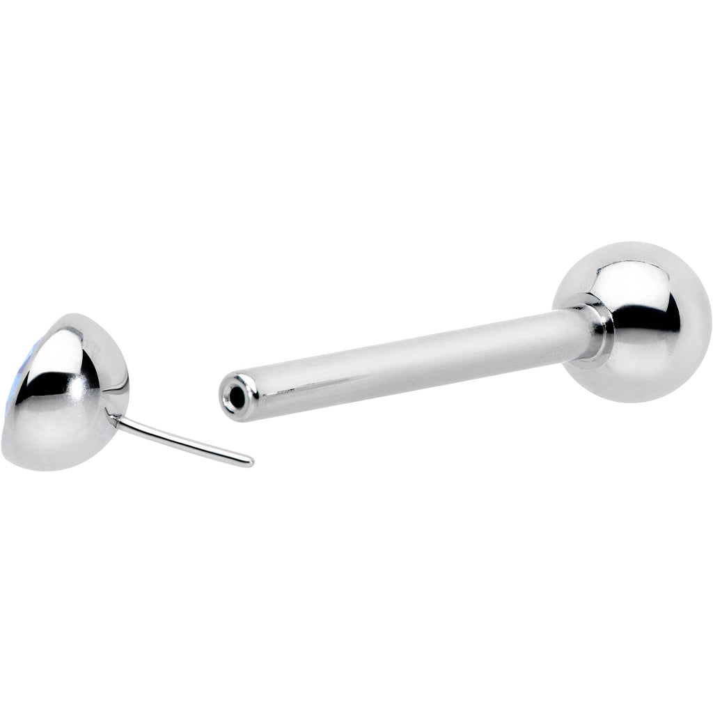 Hypoallergenic jewelry for sensitive skinBlue CZ Gem ASTM F-136 Titanium Threadless Barbell Tongue Ring