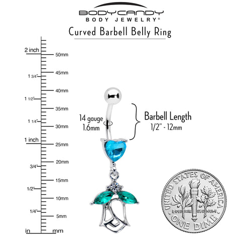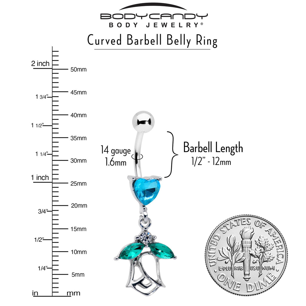 Blue CZ Gem Heart And Rose Dangle Belly Ring