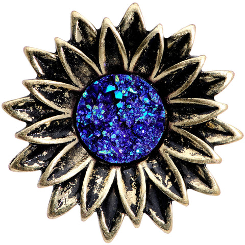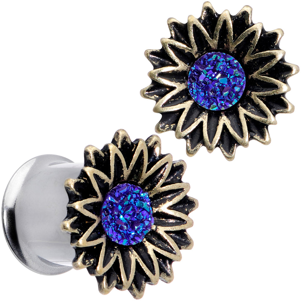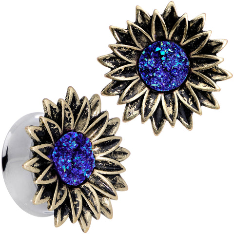 Blue Faux Druzy Sunburst Flower Double Flare Plug Set