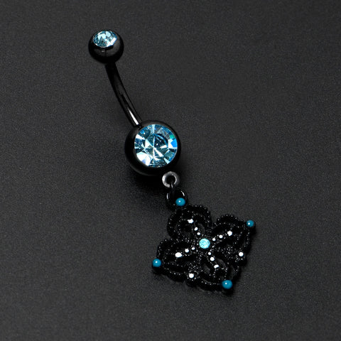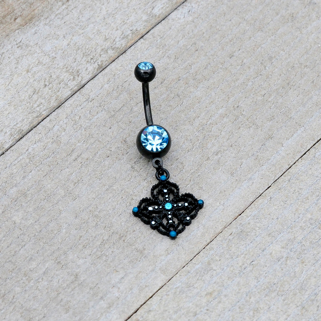 Blue Gem Black Lacy Rhombus Dangle Belly Ring