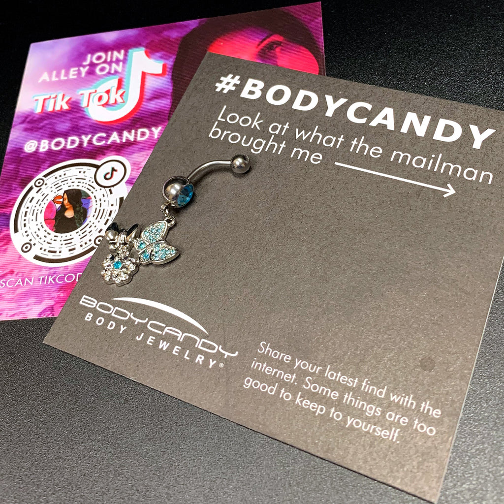 Blue Gem Butterflies Tiny Flower Dangle Belly Ring
