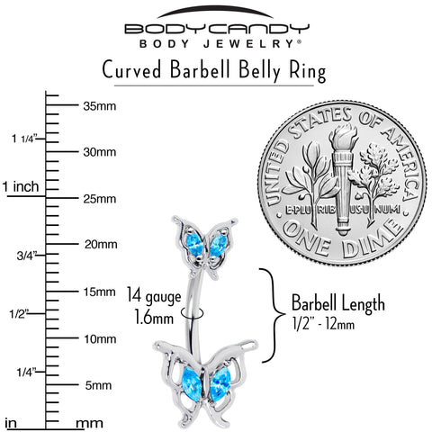 Add some butterfly fabulousness to your look with this 14 gauge navel ring. It is made with a 3/8 inch 316L surgical grade stainless steel curved barbell. Each of the ends features a butterfly charm, embellished with simple detailing. Their wings are set with blue gems for an added touch of style. Fill your look with fabulous fashion with this lovely butterfly belly piercing ring.
