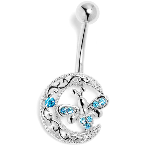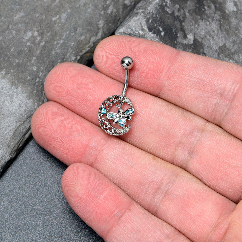 Blue Gem Lunar Dragonfly Dangle Belly Ring