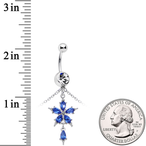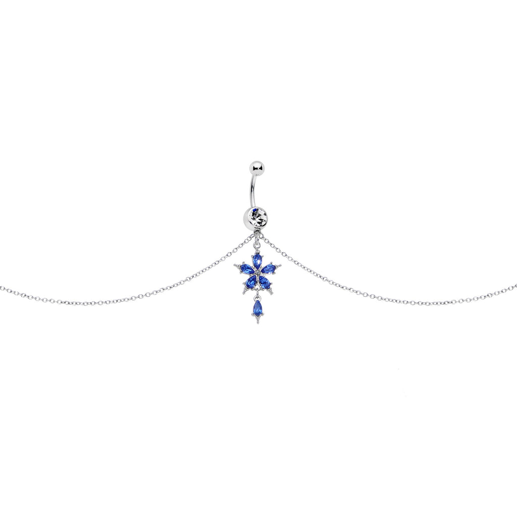 Blue Gem Tropic Flower Dangle Belly Ring Belly Chain