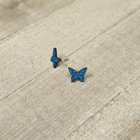 Blue Glitter Butterfly Stud Earring Set