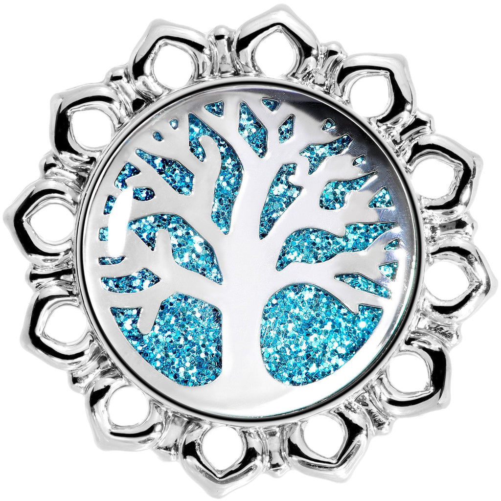 Blue Glitter Inlay Tree of Life Single Flare Plug Set 6mm to 20mm