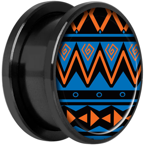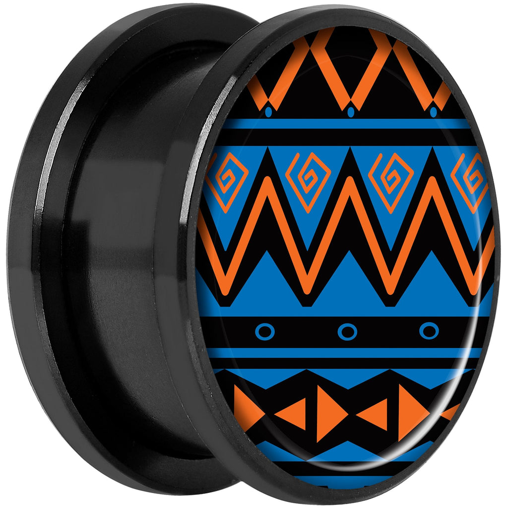 Blue Orange Tribal Print Black Anodized Screw Fit Plug Set 18mm