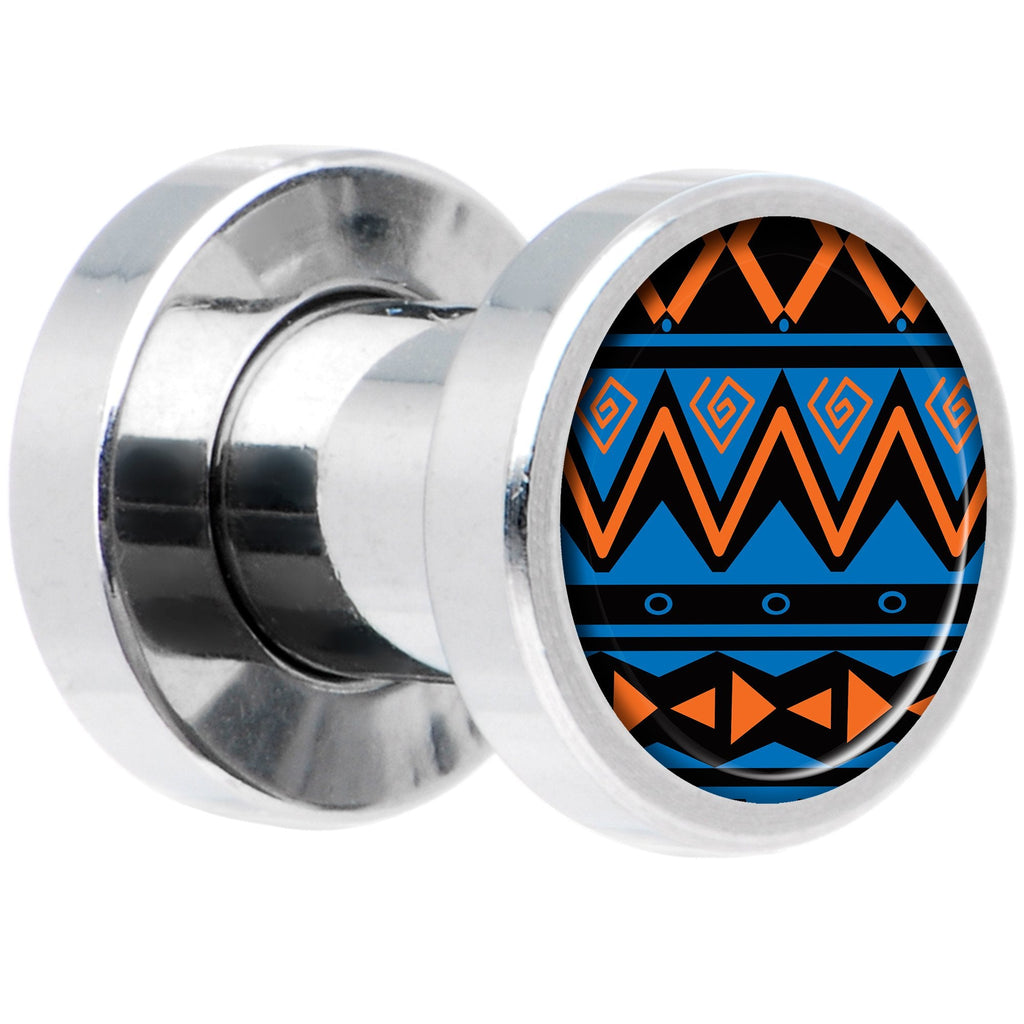 Blue Orange Tribal Print Steel Screw Fit Plug Set 4 Gauge