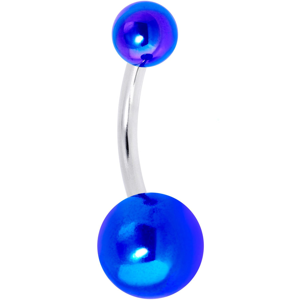 Be prepared for any event with simple belly jewelry to suit your style. This 14 gauge belly button piercing is made with a 3/8" durable 316L surgical grade stainless steel curved barbell and features pearlescent finish blue ball ends that have an eye catching rainbow effect look. Collect each color today!