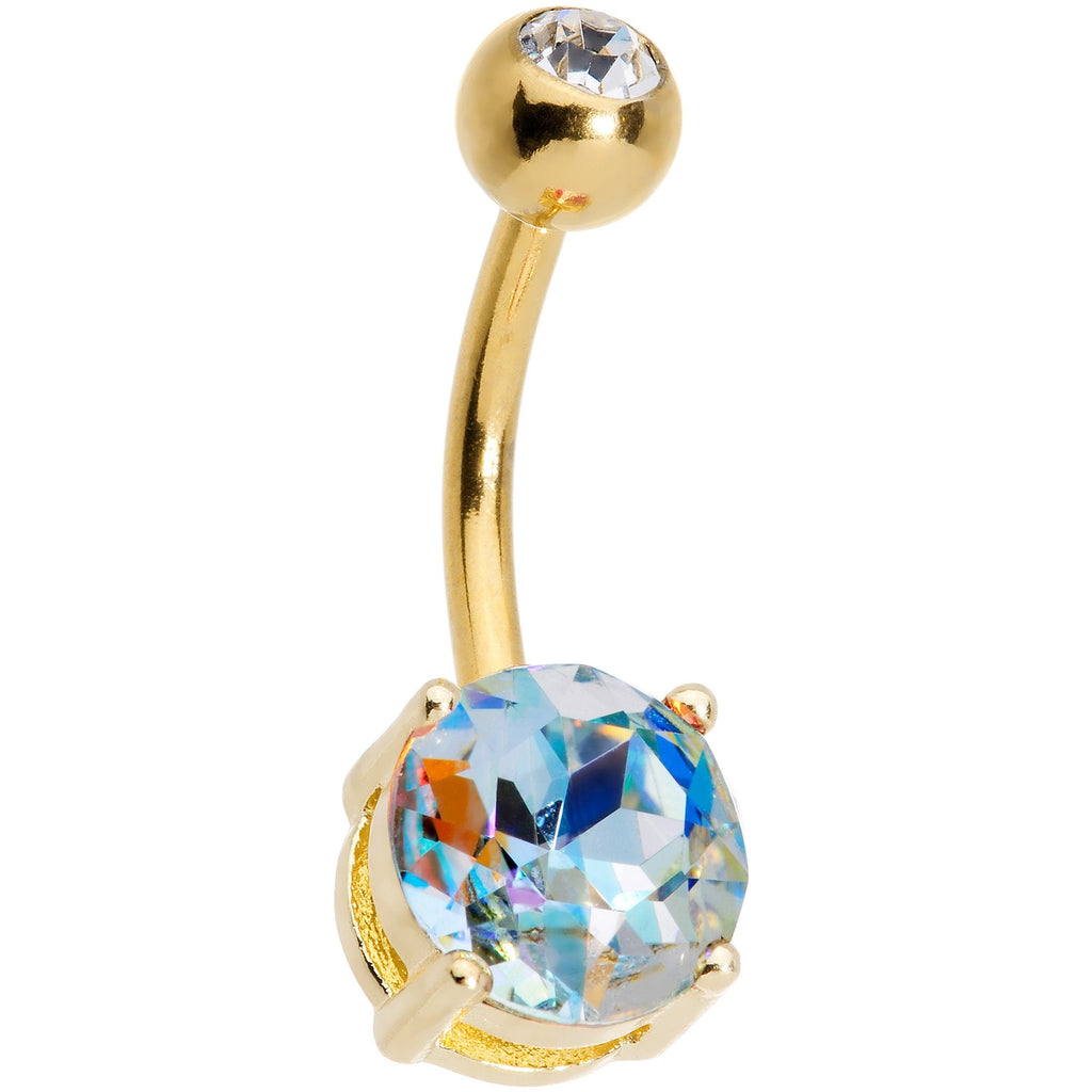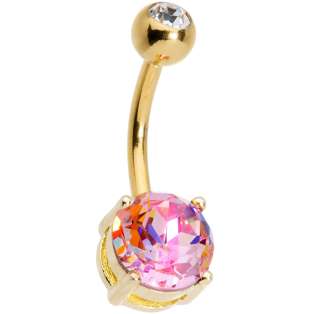 Poise yourself for the fun of alternating accessories when you wear this 14 gauge pack of five belly button rings. Made with 7/16" in length gold plated over 316L surgical grade stainless steel curved barbells, this bonus pack of navel piercings features a universe of colorful gems including light blue, pink, yellow, bright pick, and purple. Each ring also features a top ball clear gem. This bonus navel jewelry set will show the world you are passionate about colorful fashion and your navel jewelry collection!