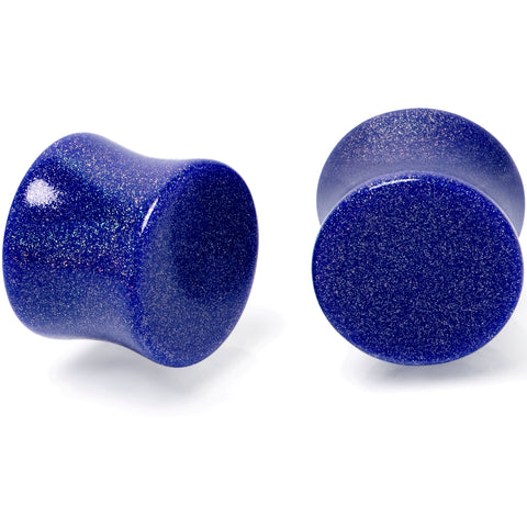 Hypoallergenic jewelry for sensitive skin.Blue Shimmer Acrylic Saddle Plug Set 6mm to 20mm Sizes