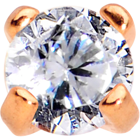 If you love simple yet stylish labret jewelry, then you will love this 16 gauge flat back barbell. Made with a 6mm rose gold titanium IP over 316L surgical grade stainless steel straight post, this labret piercing features an internally threaded 2mm clear gem end. Features a flat back that is perfect for a labret, monroe piercing, or even a cartilage piercing.Specifications