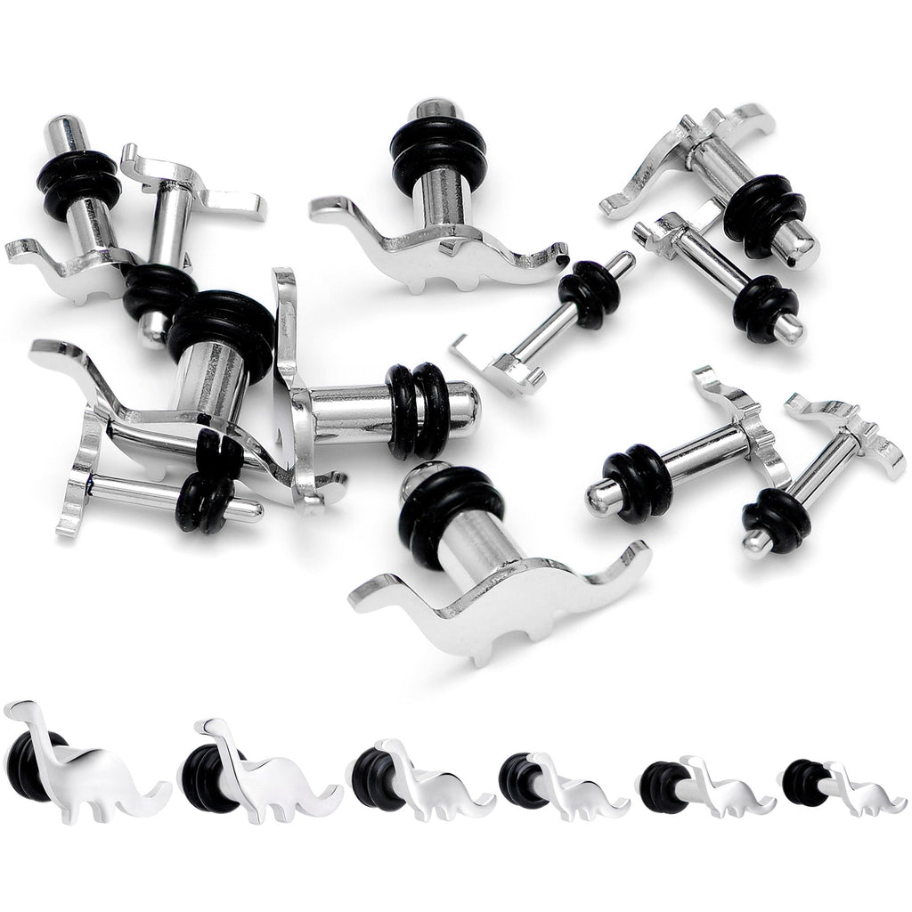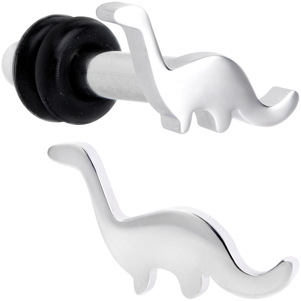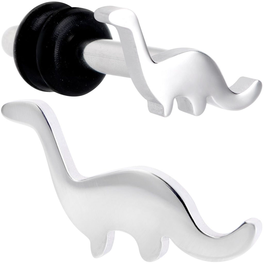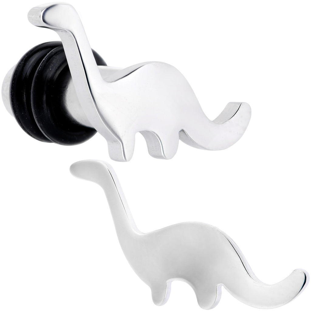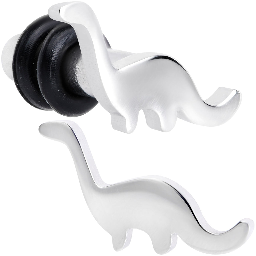You don't have to have a time machine to see dinosaurs if you have these ear gauges! These plugs are made with 316L surgical grade stainless steel and feature the silhouette of a brontosaurus on the front face. They have a single flare design for easy insertion and removal and are held in place with rubber o-rings for a secure fit. Better grab a pair of these ear plugs before they go extinct! Sold as a set of two.