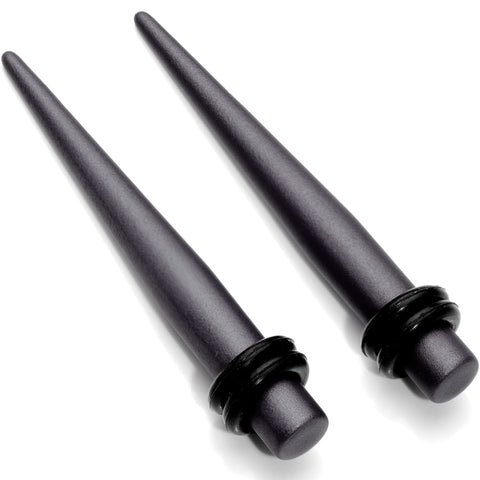 These low key tapers are simple, understated, and appealing with a fine matte finish. Featuring a matte brown finish, these straight ear gauges are made with silicone over 316L surgical grade stainless steel that is gradually tapered to gently stretch from one gauge size to the next. Rubber o-rings are included to secure the tapers in place. Sold as a set of two conveniently for you. NOTE: Prices of plugs may vary based on plug ear gauge size selected from drop down. Specifications