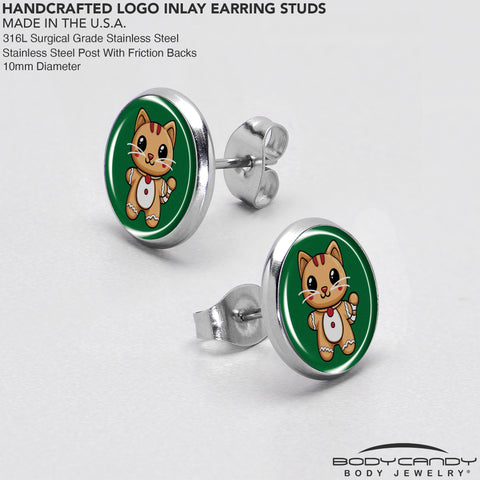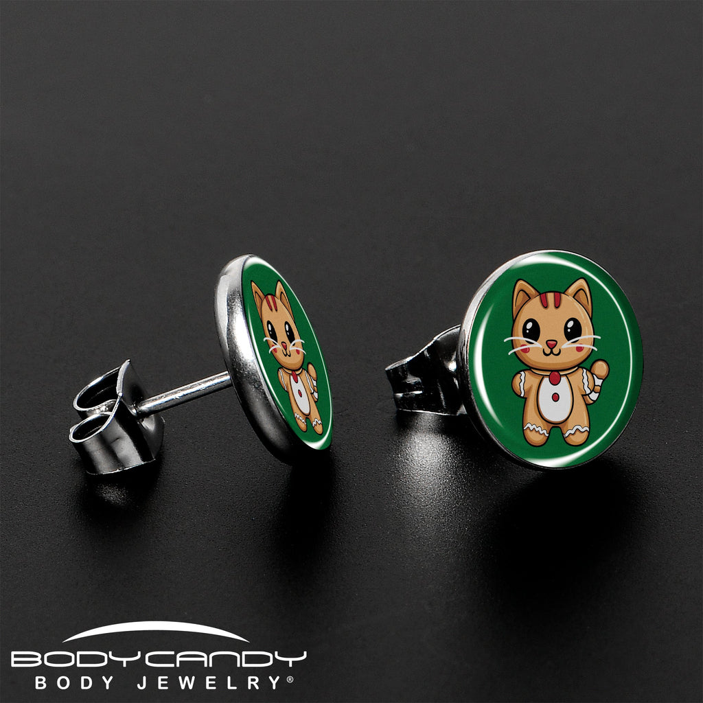Christmas Holiday Gingerbrread Kitty Cat Stud Earrings