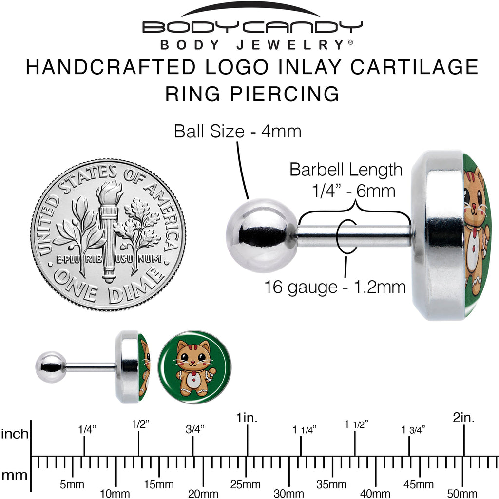 Celebrate the holiday season in style with this Christmas Holiday Gingerbread Kitty Cat tragus stud! Made from hypoallergenic materials for comfortable, worry-free wear, this 16-gauge cartilage jewelry showcases artist hand-drawn artwork featuring an adorable gingerbread kitty cat design. Each piece is lovingly hand-assembled in the USA, ensuring unique craftsmanship and quality that shines in every detail. Add festive charm to your look while supporting artisanal artistryü??perfect for gifting or treating yourself this holiday season!