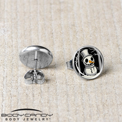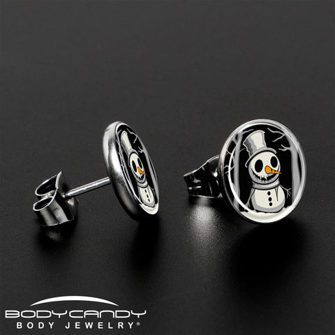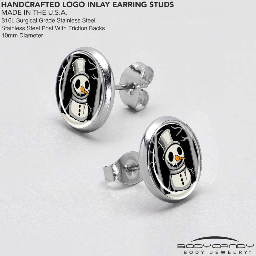 Celebrate the holidays with a twist of spooky charm! These Christmas Holiday Spooky Snowman earrings for pierced lobes feature artist hand-drawn artwork brought to life in a unique design. Made with care, these stud earrings are hand-assembled in the USA, ensuring quality craftsmanship. Designed for comfort and style, the earrings are crafted from hypoallergenic materials, making it safe for sensitive skin. Add a playful touch to your festive look while staying spooky and stylish all season long!