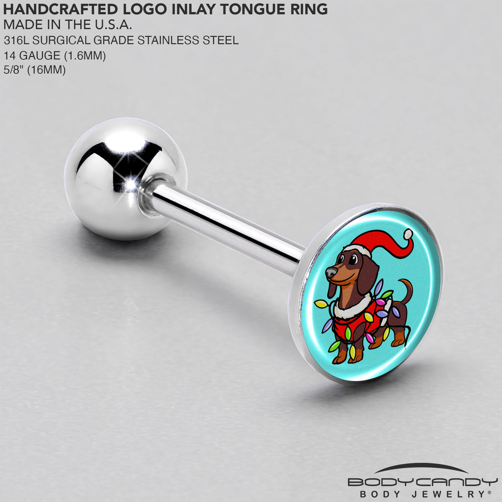 Christmas Holiday Weiner Dog Barbell Tongue Ring