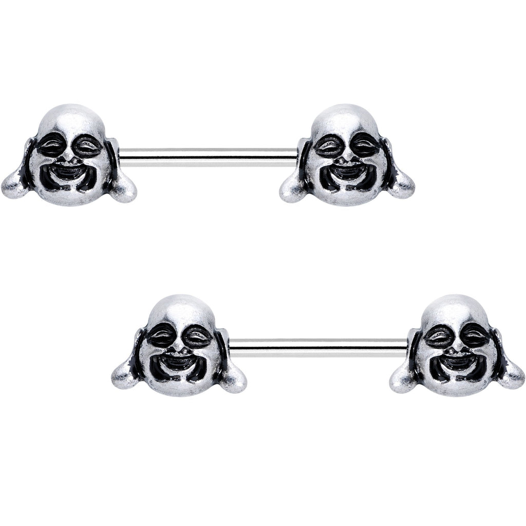 These chubby Buddhas are so happy and content! The chubby Buddha charms on these 14 gauge barbell nipple rings are smiling for all of eternity. Mounted on a pair of 5/8" straight barbells made with durable 316L surgical grade stainless steel, this Buddha is sure to bring you inner peace.Specifications