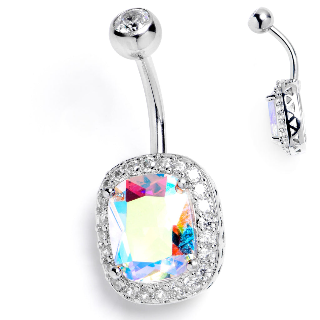Clear Aurora CZ Gem Rococo Square Belly Ring