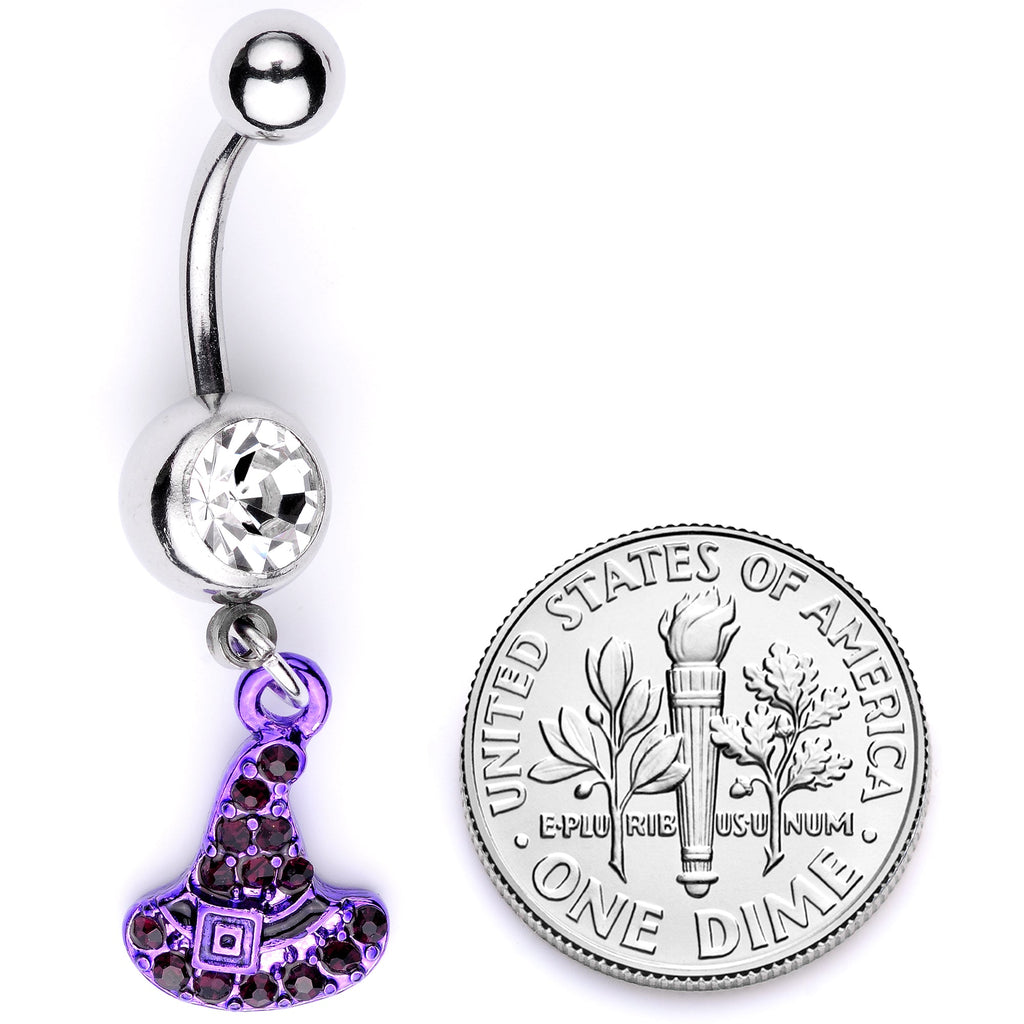 Clear Black Gem Purple Witch Hat Halloween Dangle Belly Ring