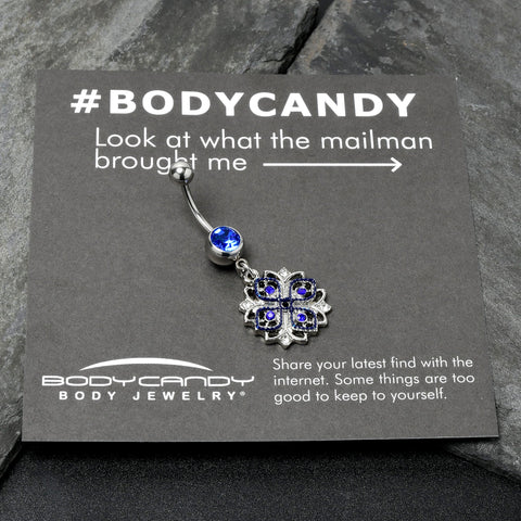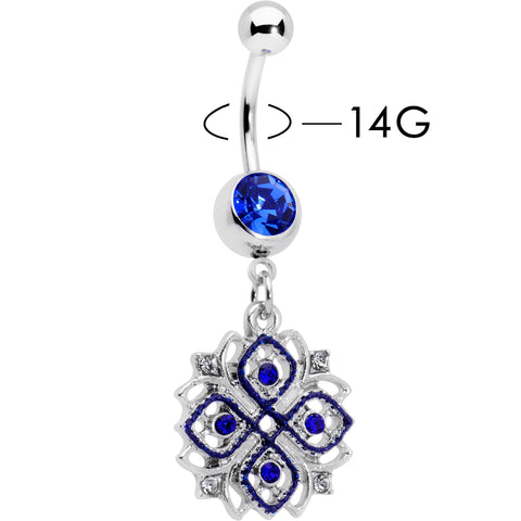 Clear Blue Gem Embellished Cross Dangle Belly Ring