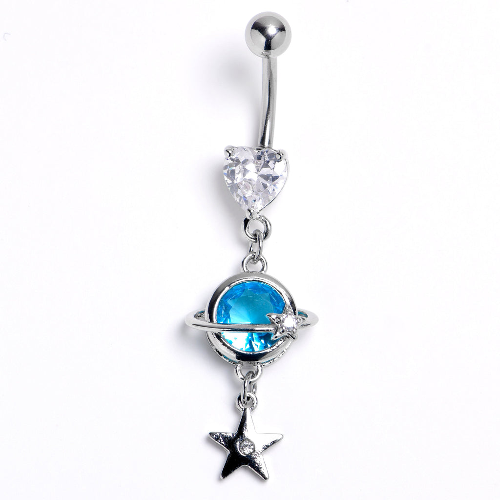 Clear Blue Gem Heart Saturn Star Dangle Belly Ring